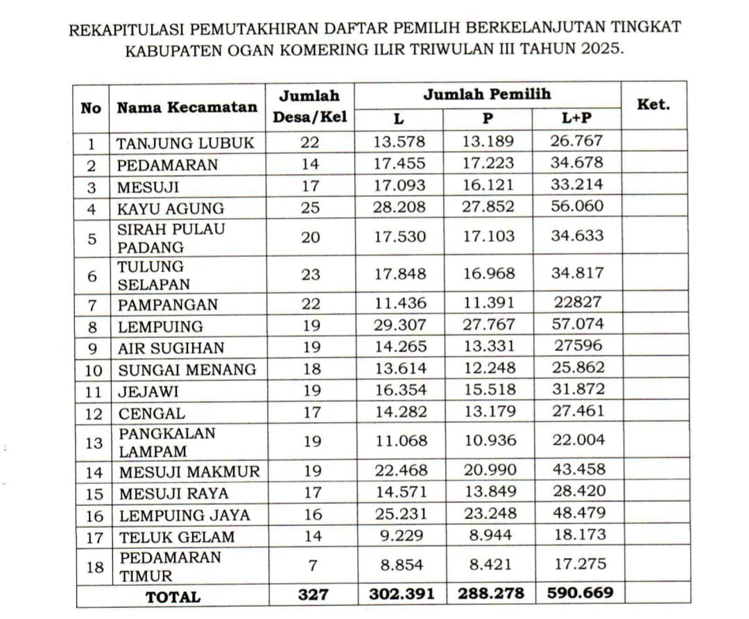 Pemutakhiran Daftar Pemilih Berkelanjutan (PDPB) Triwulan III Tahun 2025 di KPU OKI