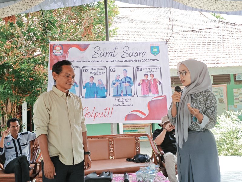 Pendidikan Pemilih ke Sekolah dalam rangka Pemilihan Ketua OSIS (PILKETOS) SMA N 1 Pedamaran