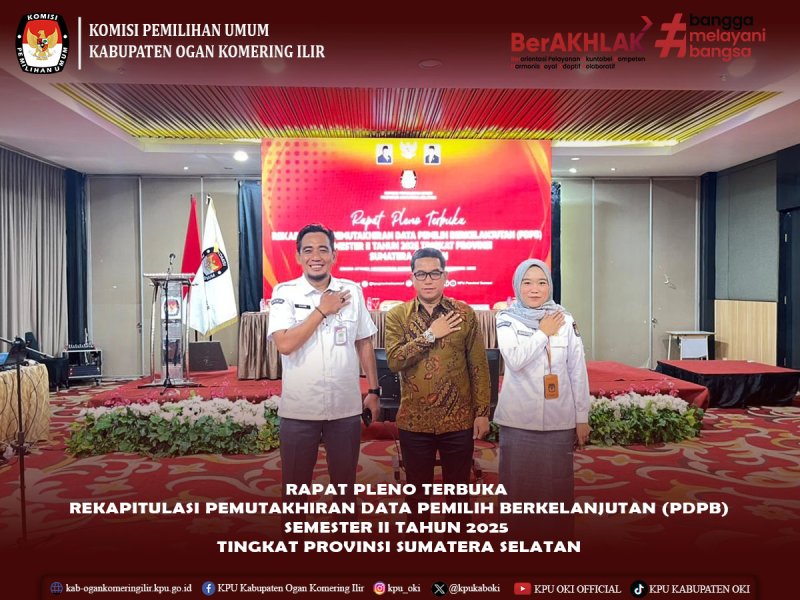 #TemanPemilih, KPU Kabupaten Ogan Komering Ilir mengikuti Rapat Pleno Terbuka Rekapitulasi Pemutakhiran Data Pemilih Bekelanjutan (PDPB) Semeseter II Tahun 2025 Tingkat Provinsi Sumatera Selatan yang di selenggarakan oleh KPU Provinsi Sumatera Selatan.
