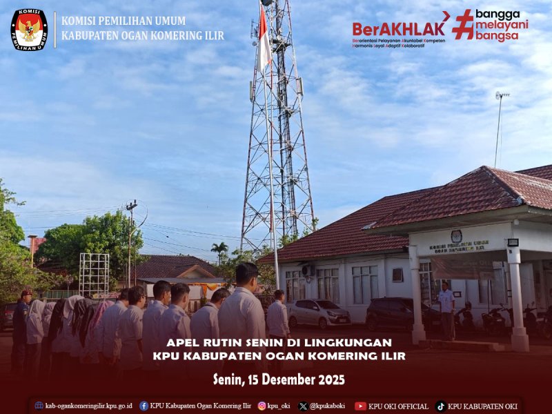 #TemanPemilih, KPU Kabupaten Ogan Komering Ilir melaksanakan Apel Rutin Senin di Lingkungan KPU Kabupaten Ogan Komering Ilir pada Senin, 15 Desember 2025 di Halaman Kantor KPU Kabupaten Ogan Komering Ilir.