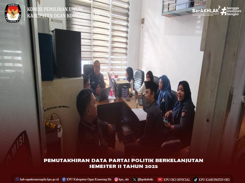 #TemanPemilih, KPU Kabupaten Ogan Komering Ilir melakukan verifikasi data partai politik berkelanjutan semester II Tahun 2025 melalui sistem informasi partai politik (sipol) dimana dalam hal ini langsung di awasi oleh Bawaslu Kabupaten Ogan Komering Ilir.