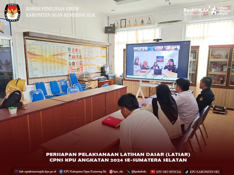 #TemanPemilih, KPU Kabupaten Ogan Komering Ilir mengikuti zoom meeting persiapan pelaksanaan latihan dasar (latsar) CPNS KPU Angkatan 2024 se-Sumatera Selatan yang di selenggarakan oleh KPU Provinsi Sumatera Selatan pada Rabu, 14 Januari 2026.