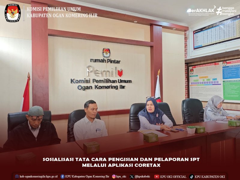 #TemanPemilih, KPU Kabupaten Ogan Komering Ilir mengikuti Sosialisasi Tata Cara Pengisian dan Pelaporan SPT melalui Aplikasi Coretax oleh KPP Pratama Kayuagung di Ruang Rumah Pintar Pemilu pada Senin, 2 Februari 2026.