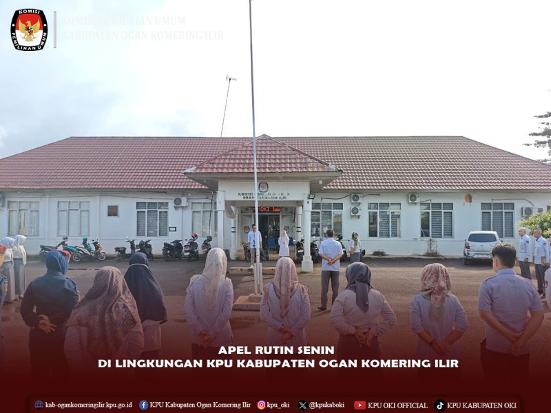 #TemanPemilih, KPU Kabupaten Ogan Komering Ilir melaksanakan Apel Rutin Senin di Lingkungan KPU Kabupaten Ogan Komering Ilir pada Senin, 12 Januari 2026 di Halaman Kantor KPU Kabupaten Ogan Komering Ilir.